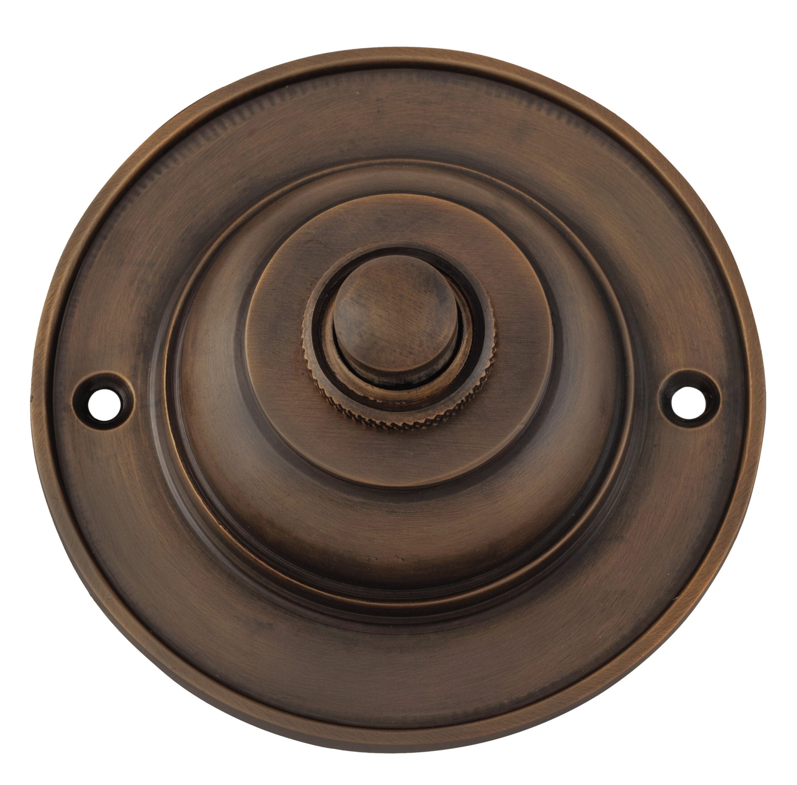 Solid brass bell presses. Hard wiring required. Suitable for 12V DC or lower.