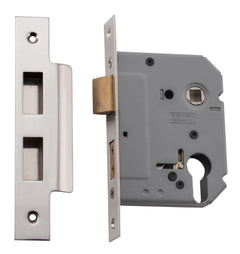 High Security. Solid brass face and striker plates. Reinforced steel pins with latch retraction. Reversible tongues. Tested over 130,000 cycles. 46mm and 57mm backsets. Fitting instructions supplied.