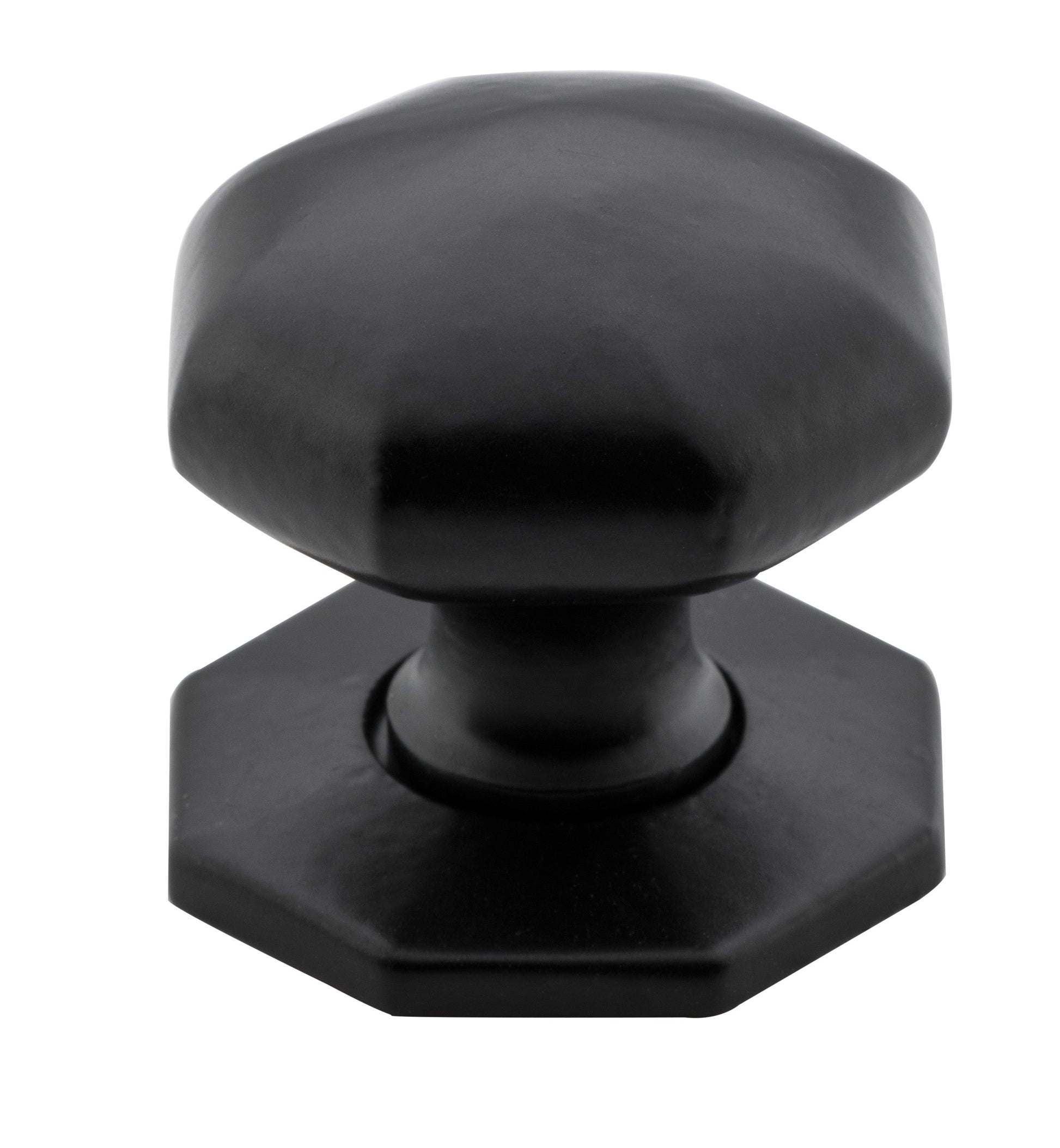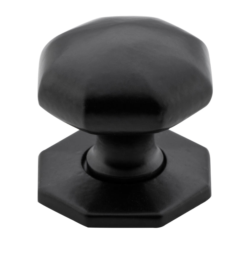 Octagonal iron cupboard knob with backplate. Available in 3 sizes.